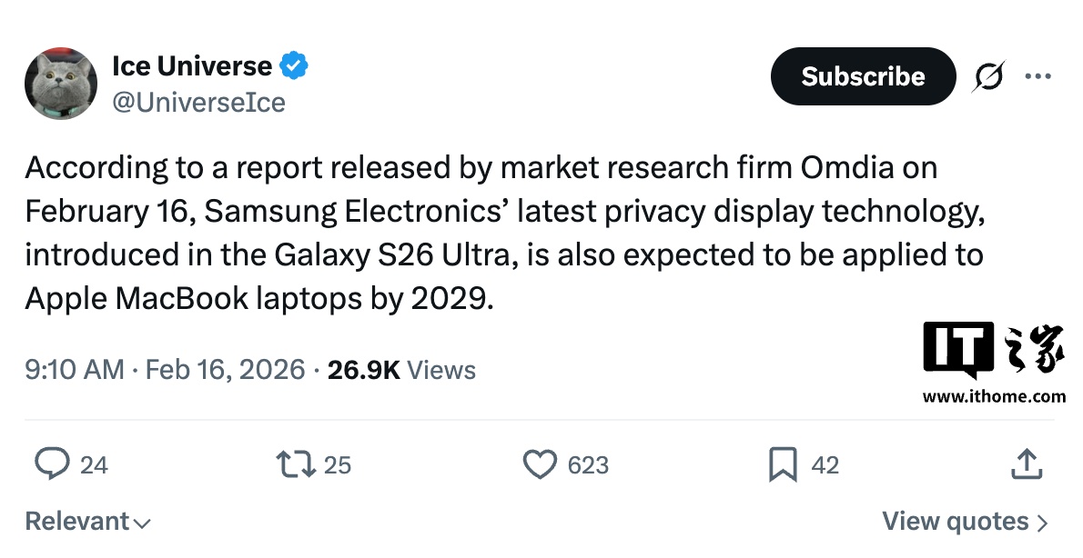 近日,有供应链消息称,苹果计划在2029年为MacBook产品线导入三星Galaxy S26 Ultra手机采用的“防窥显示屏”技术,通过硬件级视角限制方案,解决用户在公共场景使用笔记本时的屏幕隐私泄露痛点。这一动向若落地,意味着苹果将在MacBook的显示体验上首次引入“隐私增强型”技术,或改写高端笔记本的屏幕竞争维度。