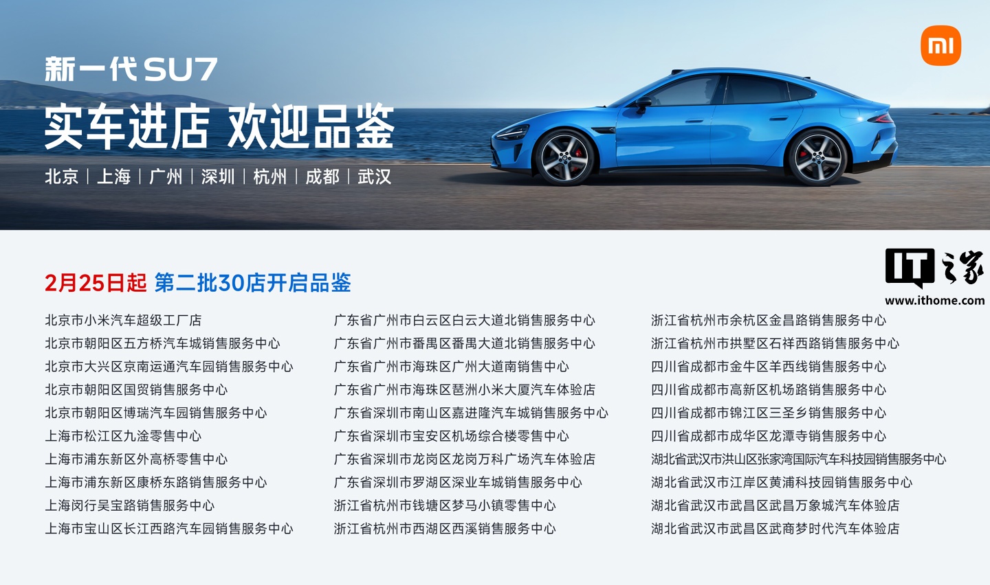 小米 SU7 卡布里蓝新色第二批实车进店,今起覆盖北京 上海 深圳等7城,为品牌智能电动车线下体验再添热度。作为小米在智能电动汽车领域的又一市场动作,卡布里蓝配色基于此前首发色系的受欢迎度推出,第二批实车进驻门店意味着该色系产能与交付节奏稳步提升,在新能源轿车与智能出行圈层引发关注,被视为小米深化用户触达、强化线下体验与品牌形象的具体举措。据官方消息,此次进店安排结合区域订单分布与门店展示容量制定,优先覆盖核心一线及热门准一线城市,方便潜在用户近距离感受新色质感与整车氛围。