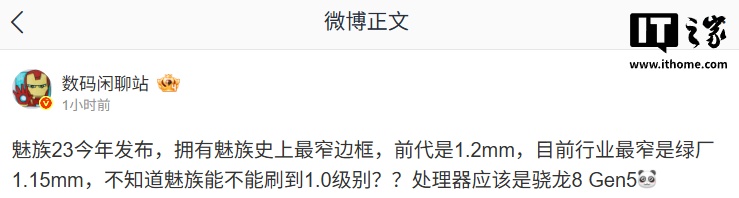 该传闻在手机行业激起较多讨论,被视为魅族在旗舰市场重新强化硬件实力与工业设计辨识度的信号。与近年部分国产旗舰追求影像或折叠形态差异化不同,魅族23突出性能平台与极致窄边设计的组合,促使业界重新审视品牌在回归高端路线时的切入点。部分观点认为,窄边框可在视觉上提升产品精致度,配合新处理器能增强综合竞争力;也有分析指出,极窄边框对工艺精度与结构强度提出更高要求,需在量产阶段确保良品率与握持手感的平衡。