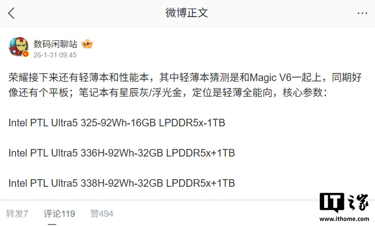 此次曝光的MagicBook 2026系列展现出荣耀在轻薄本续航与性能协同上的新思路。后续可关注官方发布会的详细参数与定价信息,以及该系列在实际办公与创作场景中的续航与散热表现。对于重视全天候使用便利与AI辅助生产力的用户,该新品的方向与配置具备实际吸引力。