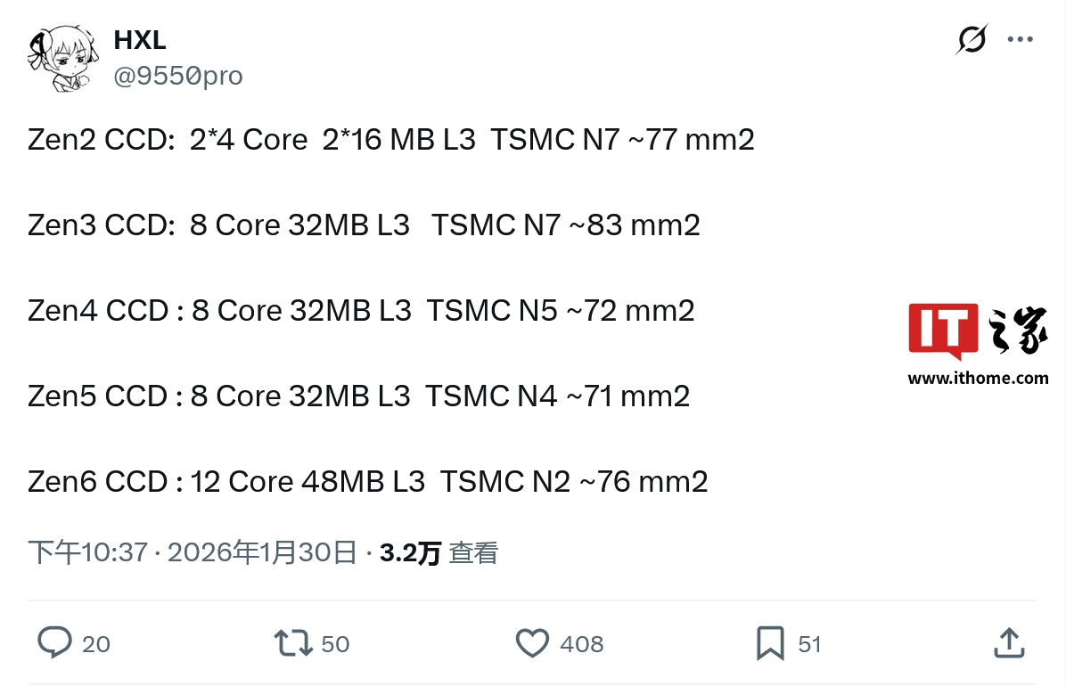 综合来看,AMD Zen6 CCD核心数量提升50%且尺寸约为76平方毫米的消息,其在后续正式发布时的实际性能表现、量产可行性以及对行业多核发展趋势的影响,值得持续关注。