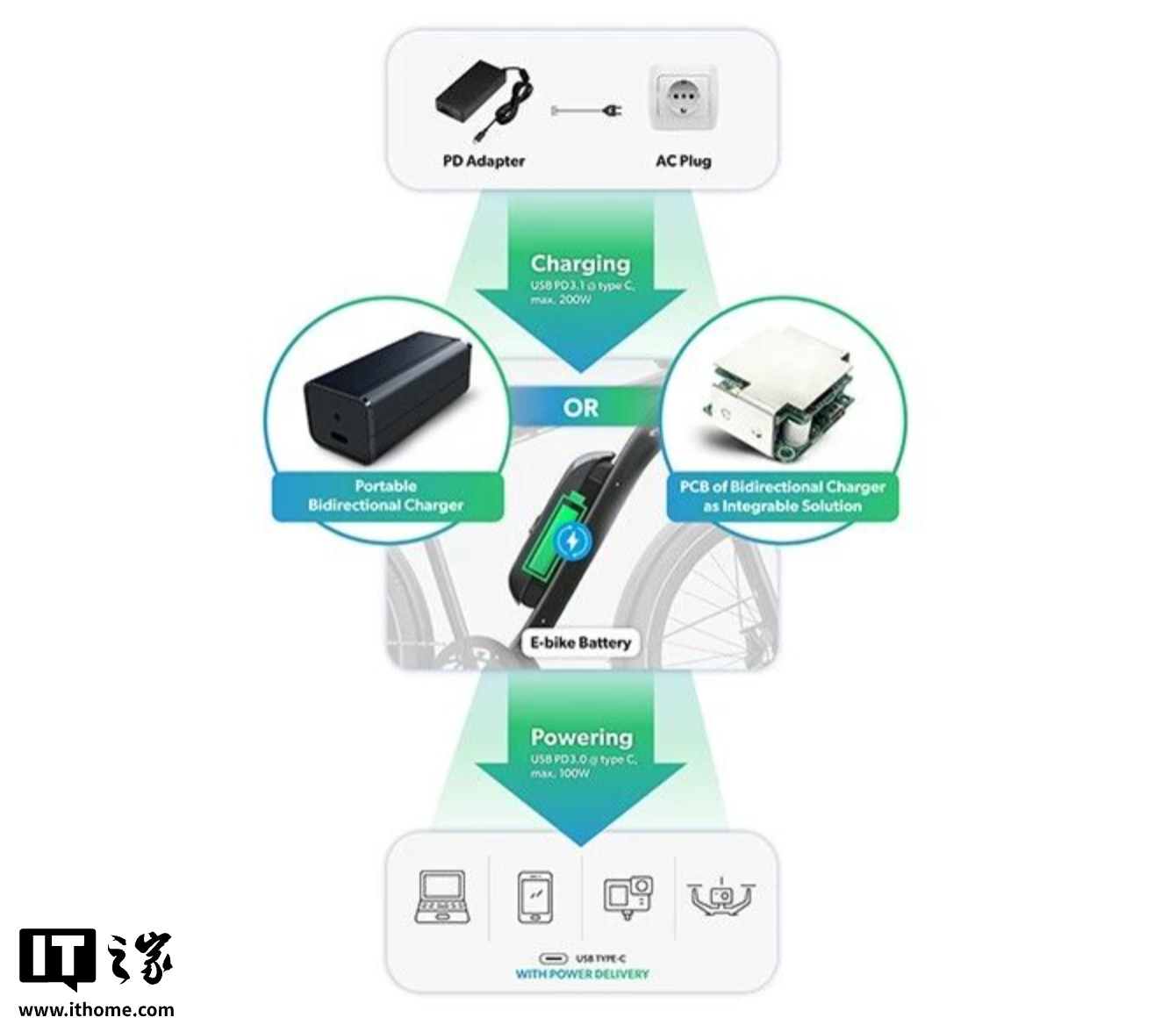 近日,FSP全汉发布一款240W PD双向电源适配器,突破传统充电设备单一用途限制,可同时为手机、笔记本电脑与电动自行车等多种设备供电。据官方信息,该产品支持最新USB PD 3.1标准,最大输出功率240W,具备双向充放电能力,既能作为高功率充电器为小型电子设备快速补能,也可在需要时反向输出,为符合电压与接口规范的电动自行车应急充电。
